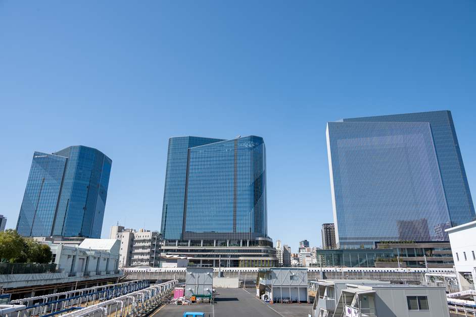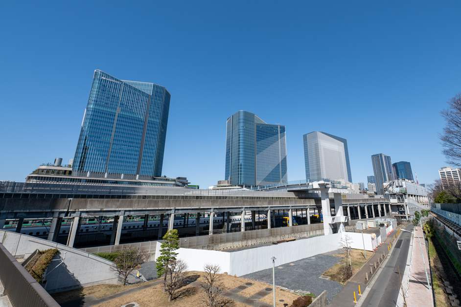 歴史と未来が交差する高輪の新街区に建つ巨大ビル群