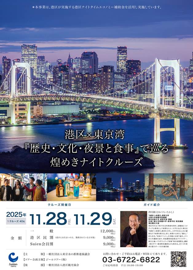 東京港醸造のウェルカムドリンクを嗜みながら、港区観光大使による歴史・文化解説が楽しめます。
