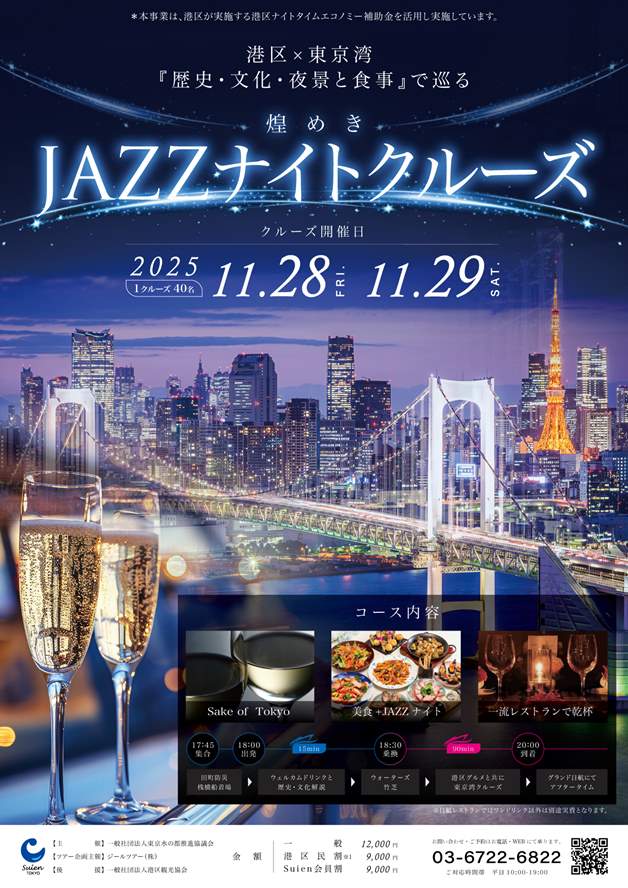 港区から出発し、東京湾の夜景を楽しむナイトクルーズです。