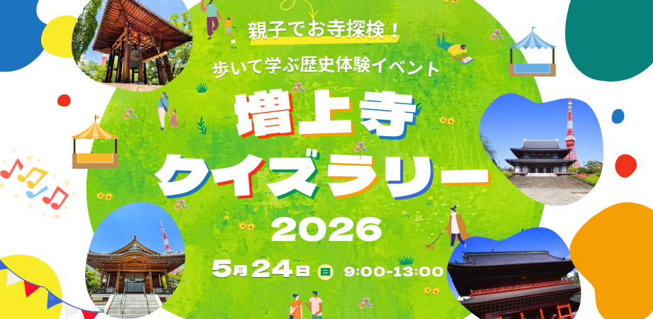 東京・芝公園にある歴史あるお寺「増上寺」を舞台に、親子で楽しめるクイズラリーイベントを開催します!