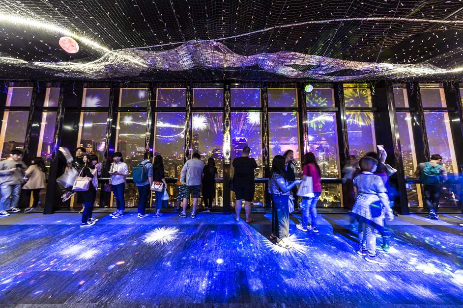 전망대에서 보이는 고층 빌딩의 네온, 기하학적 유리가 반짝반짝 빛을 발하는 최고 갑판. 마치 공중에 있는 듯한 환상적인 공간에서 알게되면 여러 시간 동안 체재 하 고 있었다 라고 하는 사람도 있을 정도!