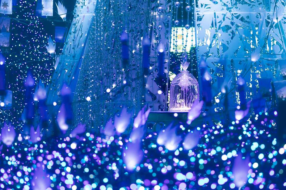 천장 부분에 블루와 화이트의 2 색 LED 전구에서 여름의 밤하늘을 표현 위 「은 하 수 조명 」는 織姫와 彦星가 빛나는 동안 큰 흐름 별이 날고 지 고 있습니다.