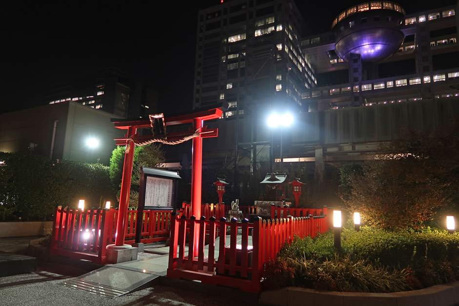 또한 현장에 있는 아쿠아 시티 오다이바 신사는 도쿄 10 대 신전 중의 하나 이며, 옛부터 「 관 동이이 로부터 」으로 사랑 받고 있는 「 잔디 오카 대 신사 」에서 분사 된 신전입니다. 사당 뒤편에 후 지 텔레비전 사옥, 직각 방향으로 도쿄만의 야경이 신전과 야경과 함께 즐길 수 있는 좋은 곳으로 장소입니다.