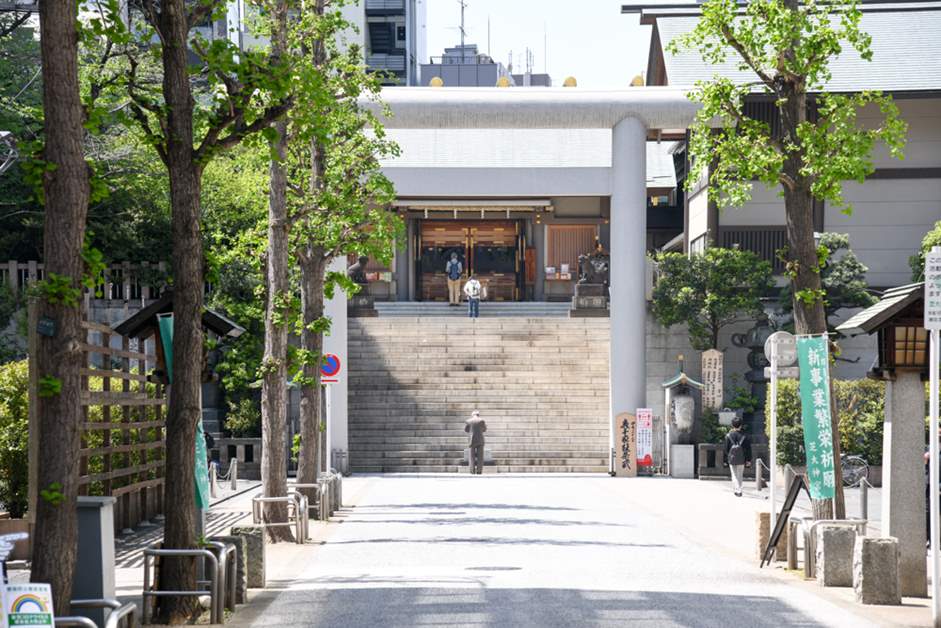 신바시 역 앞의 오피스 빌딩과 음식점에 둘러싸인 번화한 입지. 그리고 필승 기원 및 사업 번창에 효험이 있어서 우리가 방문한 오전 중에는 말쑥한 정장 차림의 사람들 여럿이 참배하러 왔었습니다. 그 외에도 출근 전인 것 같은 사람들이 지나가는 길에 도리이 앞에서 가볍게 고개를 한 번 숙이고 지나가는 모습은 시민들의 삶 속에 녹아든 신사라는 것을 알게 합니다.