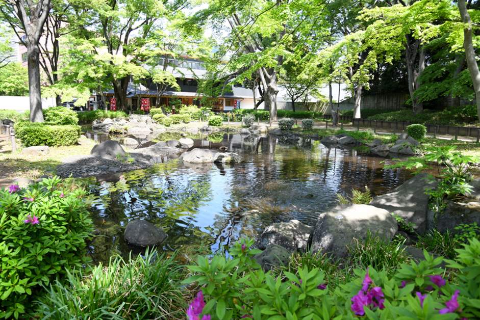 호슈인은 인접한 조조지의 레이겐 상인에 의해 조쿄 2년(1685)에 개창된 사원. 미나토 칠복신인 변재천으로도 알려져 있으며, 본존인 아미타여래와 함께 도쿠가와 이에야스 공과 관련 있는 비불, 개운 출세 대 변재천과 미나토 구 지정 문화재인 높이 2미터의 목조 염라대왕상을 모시고 있습니다. 본당 옆에 커다란 벤텐이케가 있어, 도쿄 타워를 멀리 배경으로 녹음이 녹아드는 수변 경치에 힐링이 되는 명소입니다.