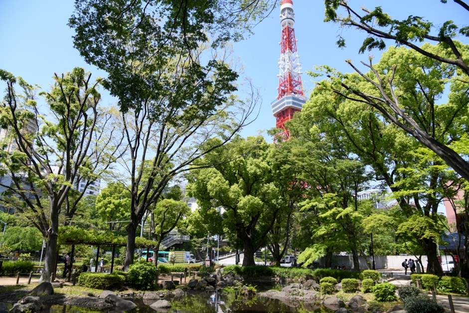 3번째는 시바 공원 내에 있는 호슈인으로. 시바다이진구로부터는 시바 공원 북쪽을 빙 돌아 8분 정도의 거리. 시바 공원 3초메 교차로에서 은행나무 비탈길을 오르는 근처는 주위 녹음이 기분 좋은 경로입니다. 옆으로 도쿄 타워를 바라보며 자전거 페달을 밟아 봄의 상쾌한 바람을 느끼면서 호슈인에 입장.