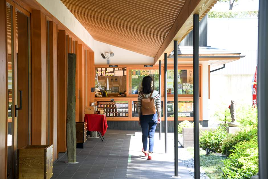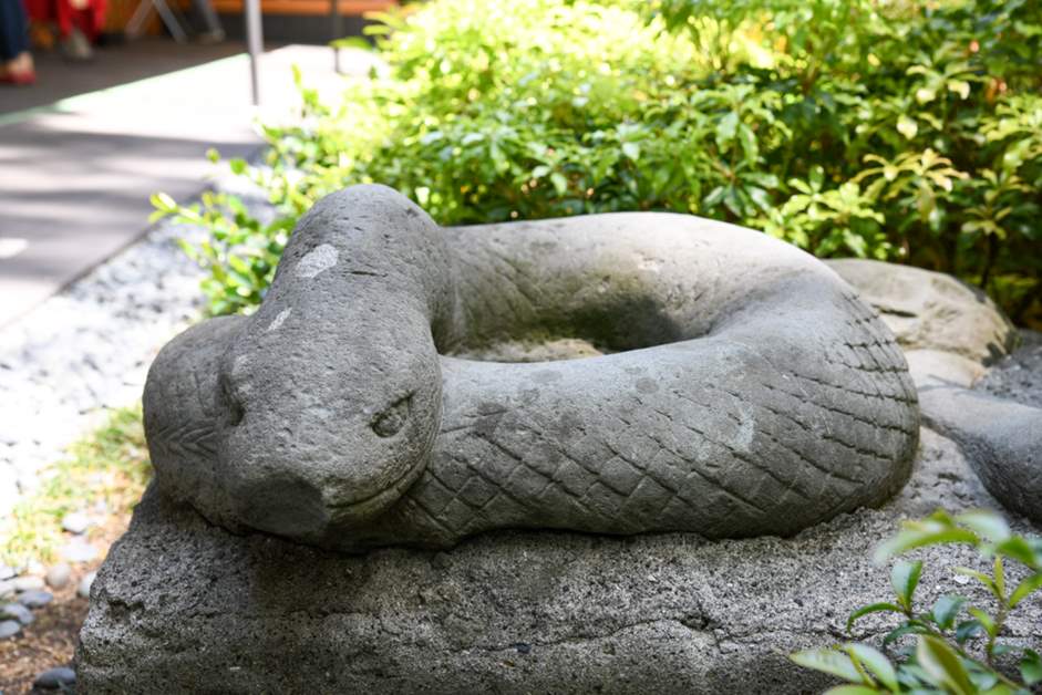 또한 경내에는 「뱀이 개구리를 먹는다, 개구리가 민달팽이를 먹는다, 민달팽이가 뱀을 녹인다」라는 3자의 습성을 바탕으로 하여 평화에 대한 생각을 담은 「산스쿠미 상」이 있는데, 이를 찾는 것도 하나의 재미. 뱀과 개구리는 비교적 간단히 찾았지만 민달팽이만은 의외의 곳에… 꼭 현지에서 찾아보세요.