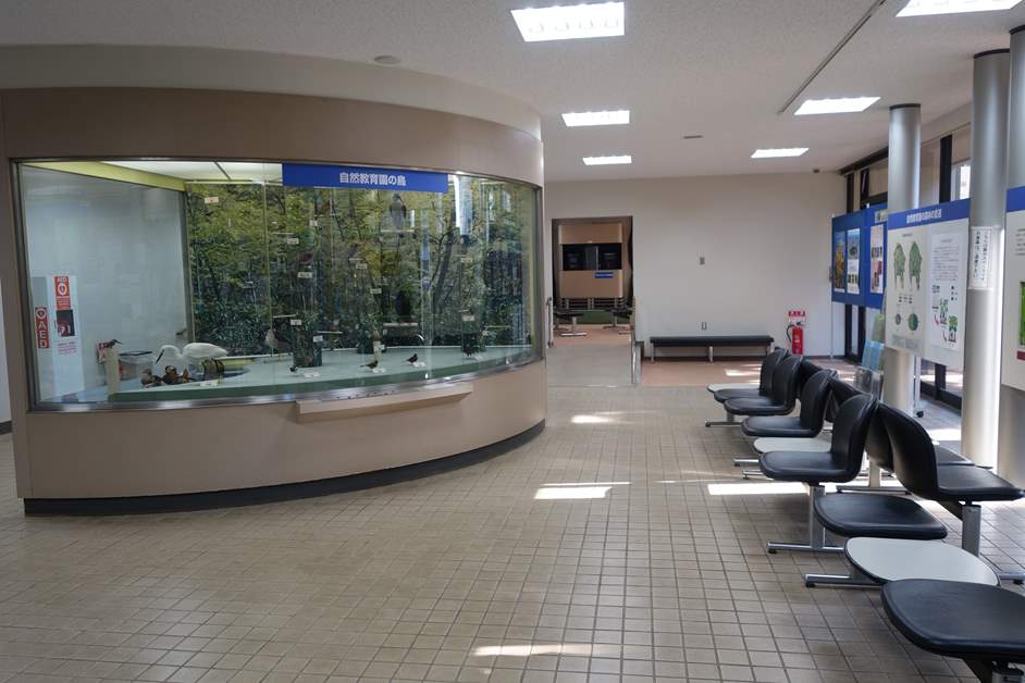 산책로를 지나면 효탄 연못과 수생 식물원이있는 수변 지역이 나옵니다. 수면에 반사되는 생생한 녹색을 보면 즉시 시원함을 느낄 수 있습니다. 공원 서쪽 끝에는 물새 습지와 '이모 리노 이케'라는 연못이있어 물놀이를하며 헤엄 치는 들새 지느러미를 볼 수 있습니다.
