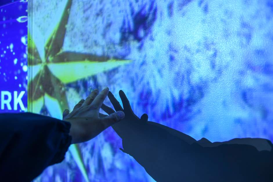 입장하면 가장 먼저 보이는 것은 눈 내리는 밤을 연상케 하는 하얀 트리가 그려진 'Welcome Christmas Tree(웰컴 크리스마스 트리)' 입니다. 이 트리는 손을 갖다대면 영상 위에 오너먼트가 나타나는 인터랙티브한 구조로 되어 있습니다.