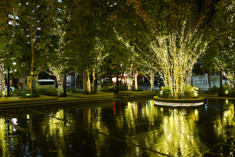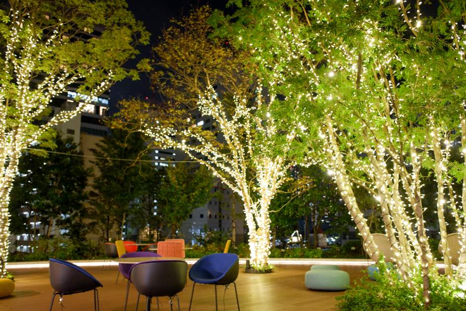그리고 이 건물의 큰 특징인 스킵 테라스도 일루미네이션으로 이 시기에만 느낄 수 있는 경치로 변신. 사람들의 휴식공간인 3층 그린 플라자도 부드러운 불빛으로 꾸며져있어 따뜻한 분위기를 느낄 수 있습니다.