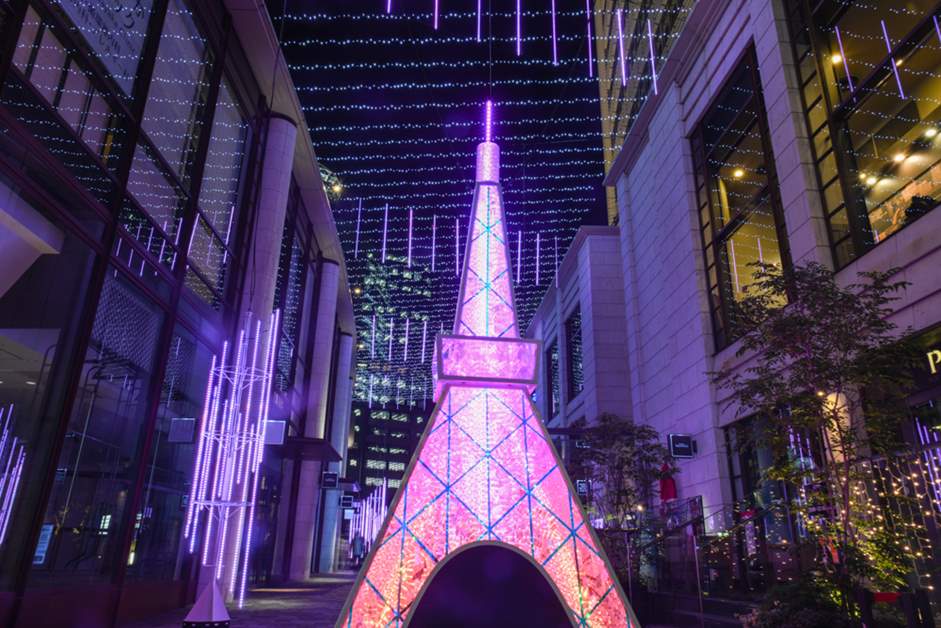 약 1670색의 표현이 가능한 LED 일루미네이션은 사계절과 시간의 변화를 이미지화 한 것. 올해도 정면 입구에는 실물의 100분의 1사이즈, 높이 3.33m의 도쿄 타워 형태의 일루미네이션 오브제가 등장. 셀카용 라이트 스탠드가 달린 하트형 조명도 다시 등장해 촬영 명소로 인기를 끌고 있습니다.