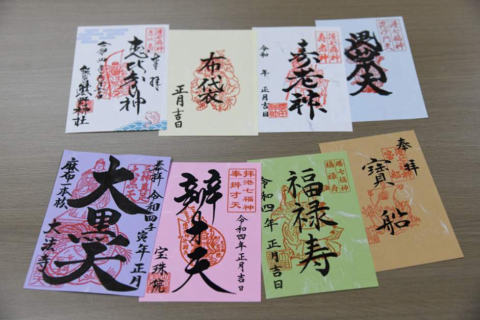 미나토시치후쿠진 순례에서는 가장 처음의 순례소에서 받은 '전용 색지'에 도장을 찍거나 미리 인주가 찍혀져있는 용지로 시치후쿠진의 도장을 받을 수 있습니다(도장 가격은 1장소당 각 500엔).
