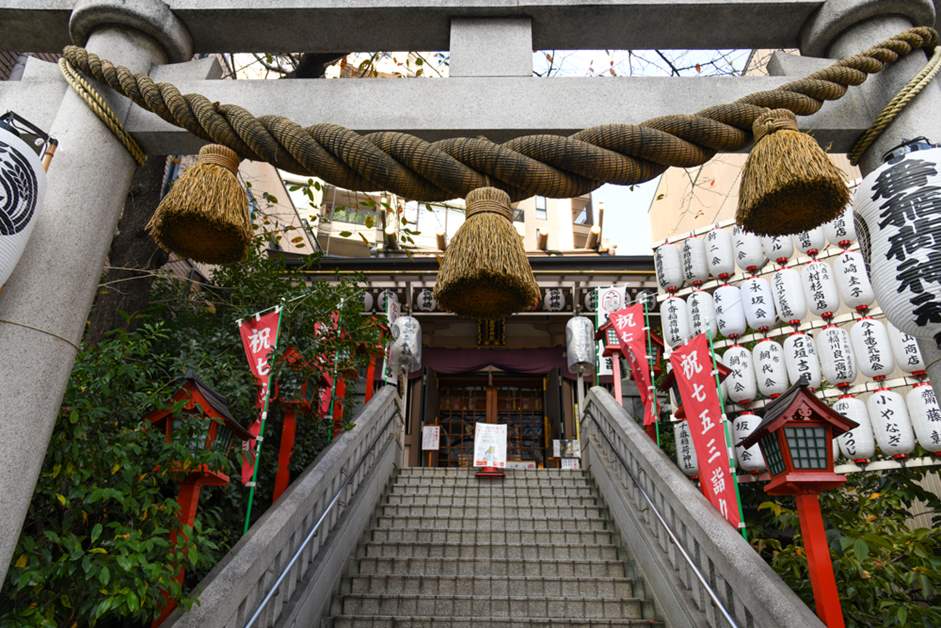 아자부주반역 앞에 있는 교차로로 나오면 상점가의 들뜬 분위기에 마음이 빼앗길 수 있겠지만 먼저 주반이나리 신사로 참배하러 갑시다.
