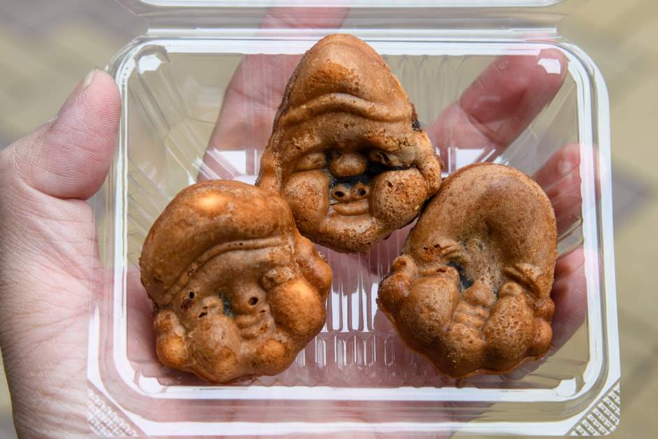 그리고 붕어빵과 오반야키 등 맛집 과자 가게가 많은 것도 이 상점가의 매력입니다. 그 중에서도 시치후쿠진과 관련의 것을 찾는다면 조시키 거리에 있는 '키분도'로. 메이지 43년(1910) 창업한 전통 화과자점에서는 장인 경력 50년 이상인 주인이 전통 제조법으로 만드는 부드러운 맛의 시치후쿠진 닌교야키를 구입할 수 있습니다.