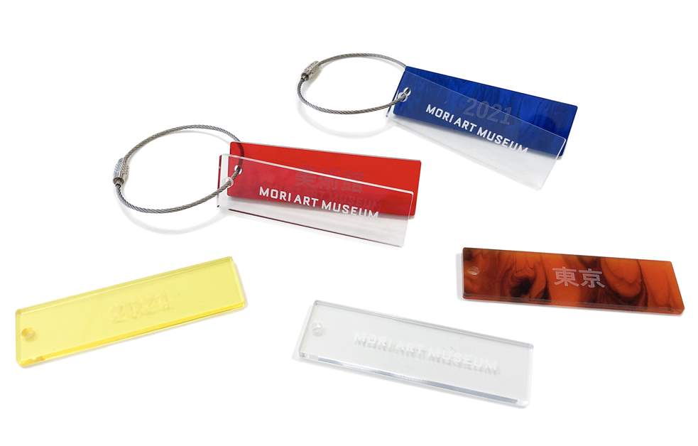 가장 먼저 소개드릴 제품은 'One-and-Only 키 체인' (태그 플레이트 1개 500엔)입니다. 'One-and-Only'는 업사이클 브랜드인 NEWSED와 함께 시작한 상품라인. 형형색색의 태그판에는 '미술관', '스카이데크' 등 모리 미술관과 전망대에서 따온 문구가 새겨져 있습니다.