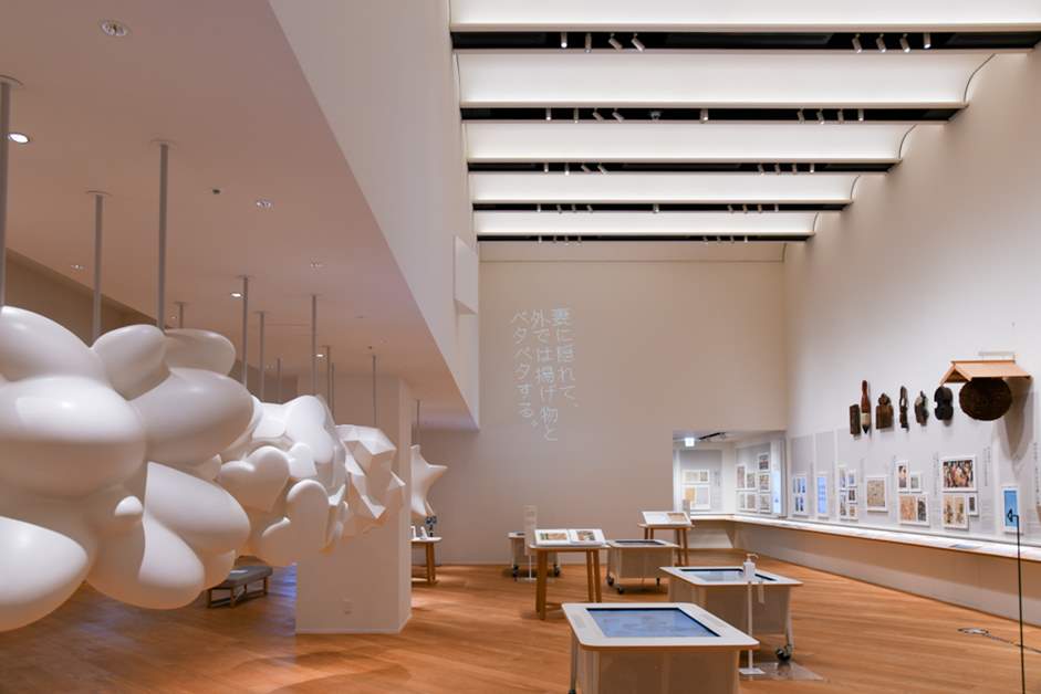 평면 작품 뿐만 아니라 에도시대에 니혼바시의 에치고야 포목점이 실시해 광고의 일환이 된 '카시가사'의 지(紙)우산이나, 마찬가지로 에도시대의 목제 간판 등, 입체 전시도 풍부. 또한 1950년대부터의 텔레비전 CM등을 볼 수 있는 '디지털 컬렉션 테이블'부터 보는 것만이 아닌 다양한 기획도 준비되어 있습니다.