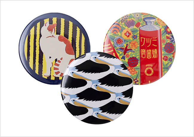 입구에 자리한 뮤지엄 샵에는 옛 광고 디자인을 접목한 레트로 풍의 취미 아이템이 가득. '내가 직접 쓰고싶어지는 물건'을 염두에 두고 여러 스탭들이 실용성을 중시하여 고안한 아이템들은 모두 역작입니다. 1매 50엔의 포스트 카드, 1개 100엔의 캔 배지 등, 친구나 동료들에게 부담없이 나누어 줄 수 있는 아이템이 많은 것 또한 굿 포인트.