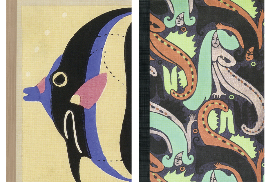 마찬가지로 스기우라 히스이가 그린 '물고기'와 '인어'를 표지로 디자인한 'A6 노트'(각 300엔)는 키타구에 있는 시니세마치 공장, 나카무라 인쇄소가 제조하고 있는 '수평으로 사용가능한 노트'와 콜라보. 수평으로 사용가능하기 때문에 세로로도 가로로도 사용할 수 있는 점이 매력포인트.