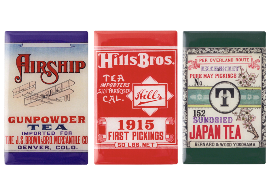 3종류가 갖추어진 '마그넷'(각 280엔)은 발매된지 얼마 지나지 않았지만 인기 상품 반열에 들어선 새로운 얼굴. 디자인되어 있는 것은 메이지 시대부터 다이쇼 시대에 수출용으로 판매되었던 차(茶)의 라벨입니다. 수출산업의 여명기에 '외국에서 팔리는 것'을 목표로 서양 의장을 배워 그려진 라벨은 당시 디자이너들의 노력의 산물. 튼튼한 구조 또한 매력 포인트 입니다.