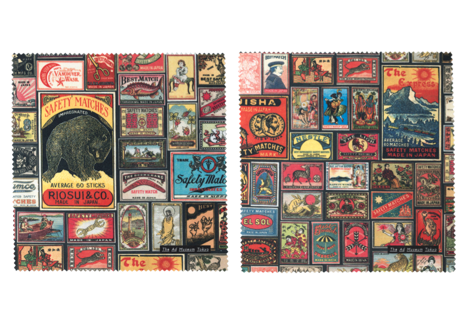 반면 마이크로파이버 크로스(각 400엔)는 옛날 성냥 라벨을 모은 일품. '곰'과 '태양', 두 종류가 모두 갖추어져 있어 어떤 그림을 사용할지 망설였다는, 그야말로 심혈을 기울인 일품입니다.