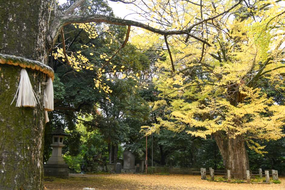 가지가 아래로 자라 있어 '거꾸로 은행나무라'고도 불리는 거목은 줄기의 둘레가 10.4m로 도쿄에 있는 은행나무 중 가장 큰 크기. 전쟁 중에 한때는 고사(枯死)의 위기를 맞았지만 전후 시민들의 노력으로 부활한 기적적인 존재이기도 합니다. 직접 보면 마치 다가올 것 같은 크기에 압도당하게 될 것 입니다.