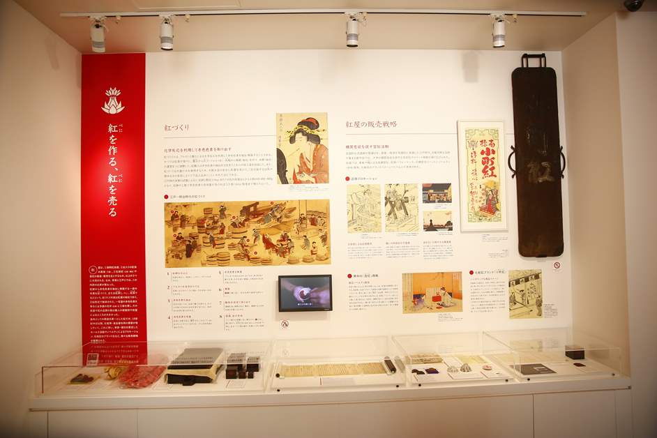 관내에는 다양한 자료가 전시되어 있는 상설전시와 립스틱을 체험할 수 있는 커뮤니케이션 룸으로 나뉘어져 있다. 상설 전시에서는 예로부터 염료와 화장에 사용되어 온 홍색의 역사와 원료가 되는 홍화의 생산과 유통 과정 등을 살펴볼 수 있다.