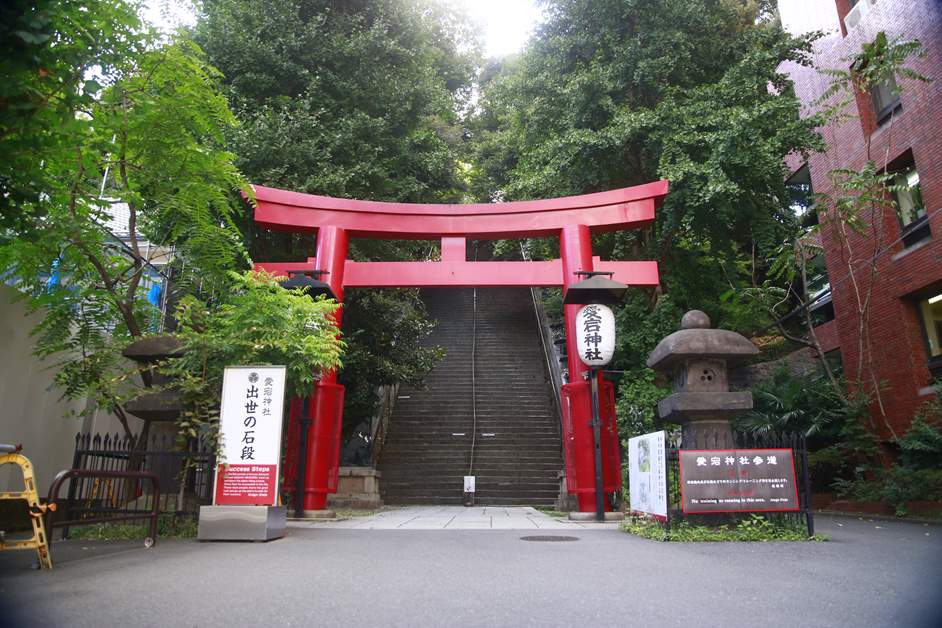 미나토구 아타고 1초메(愛宕一丁目)에 있는 아타고야마(愛宕山) 산 정상에 있는 아타고 신사(愛宕神社)는 화재를 막아주는 신(防火の神様)을 모시기 위해 도쿠가와 이에야스(徳川家康) 공의 명령으로 1603년(케이초 8년)에 창건되었습니다. 참배하려면 오토리이(大鳥居)를 지나 돌계단을 올라가야 합니다.