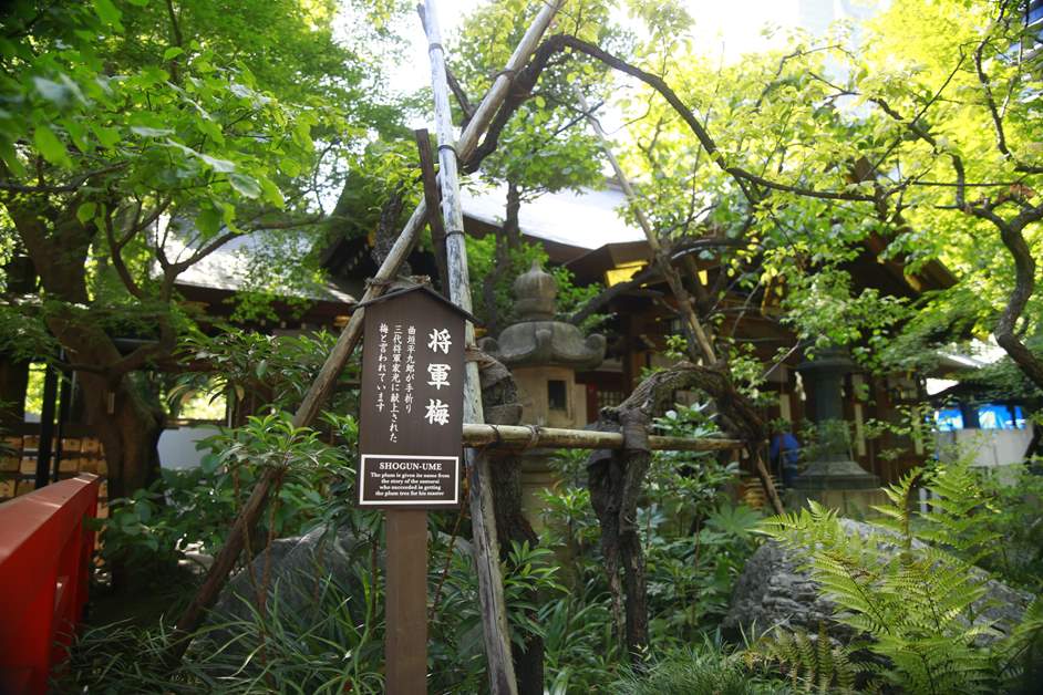 산 정상에는 헤이쿠로(平九郎)가 돌계단을 뛰어 올라가 이에미츠(家光) 공에게 바친 '쇼군바이(将軍梅)'가 있습니다. 출근 전에 출세의 돌계단을 올라가 참배한 후에 출근하는 사람도 있다고 합니다.