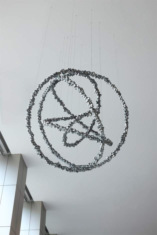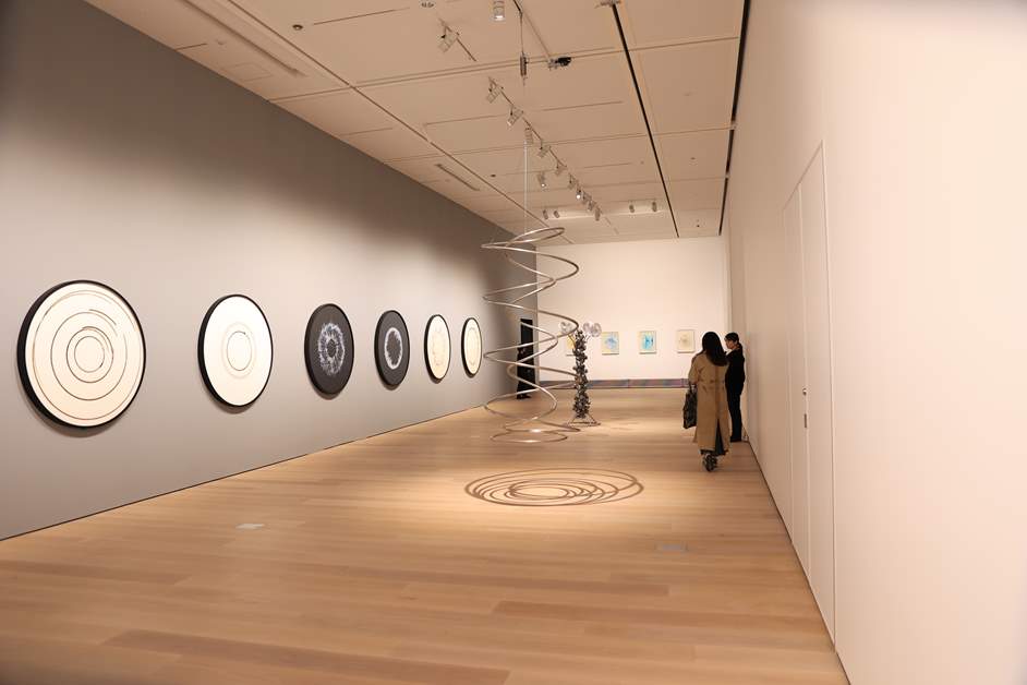본 전시를 위해 제작된 《호흡을 위한 공기》와 2001년 제작된 《더블 스파이럴》 등은 입체물로서 존재감을 발하고 있습니다. 같은 공간의 벽면에는 《태양의 드로잉》과 《바람의 기술》이 전시되어 있었습니다.