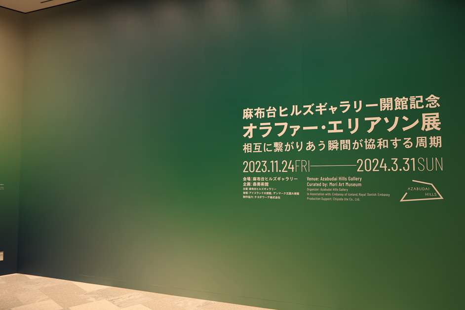 아자부다이 힐스 갤러리에서는 아자부다이 힐스의 개업부터 2024년 3월 31일까지 약 4개월에 걸쳐 '올라퍼 엘리아슨전: 서로 이어지는 순간이 협화하는 주기'가 개최 중입니다. 모리 JP 타워의 오피스 로비에 있는 공공 미술 작품을 제작한 엘리아슨 씨가 제작한 작품들이 전시되어 있습니다.