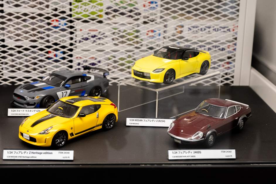 타미야의 프라모델은 50년 이상 전부터 판매된 것부터 올해 막 발매된 신상품까지 매우 다양합니다. "1970년대 인기였던 페어레이디 240ZG 등과 같이 과거의 명차를 최신 기술로 모형화하기도 해요. 조립 편이성은 물론, 당시에는 재현하지 못했던 정밀한 디테일도 즐겨 주시길 바랍니다"(야마모토 씨)