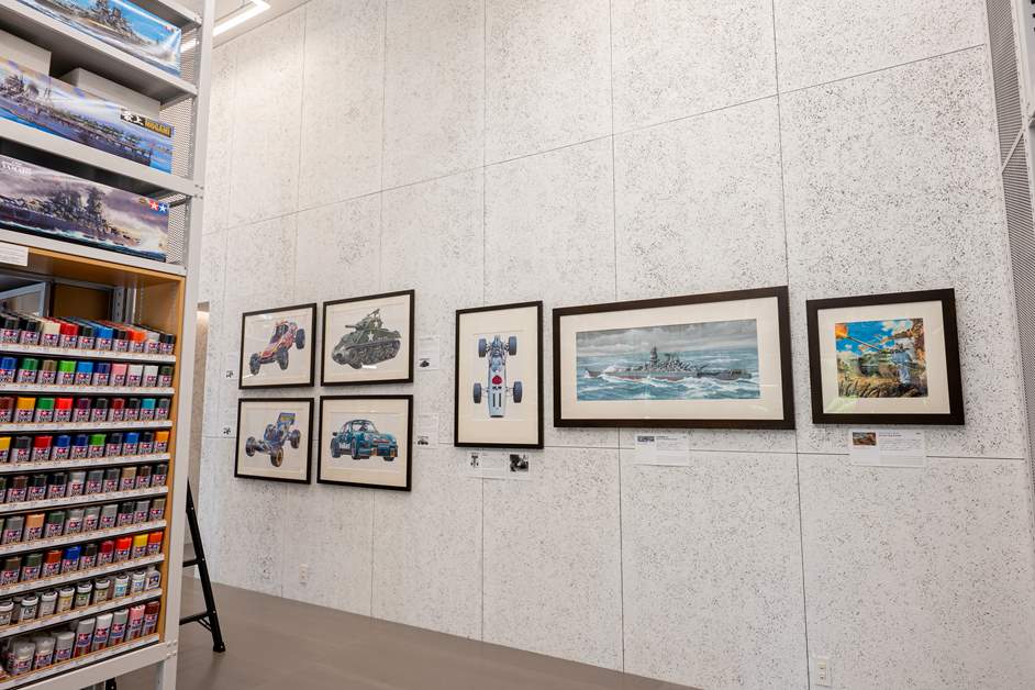 시설 내부에서는 프라모델 상자를 장식하는 박스 아트의 복제화도 전시하고 있습니다. 프라모델 상자에 사진이 아니라 그림을 사용하는 이유는, 패키지에 적합한 사진을 준비하기가 어렵다는 점과, 그림을 사용하면 실물의 이미지와 박력을 전달할 수 있기 때문이라고 합니다.