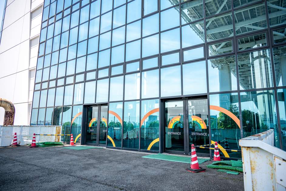 거대한 다리의 케이블을 고정하는 만큼, 시바우라 앵커리지의 외관은 중량감이 있었습니다. 가까이 다가가면 그 크기에 압도될 정도입니다. 그 속을 지나가면 레인보우 프롬나드로 가실 수 있습니다.