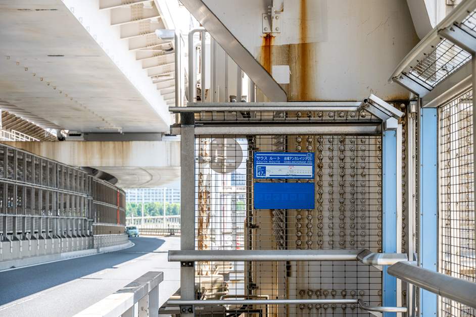 사우스 루트의 시바우라 쪽 주탑부 우회 공간에서 다이바 방면을 촬영
