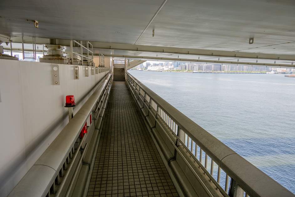 사우스 루트의 시바우라 쪽 주탑부 우회 공간에서 시나가와 부두 방면을 촬영