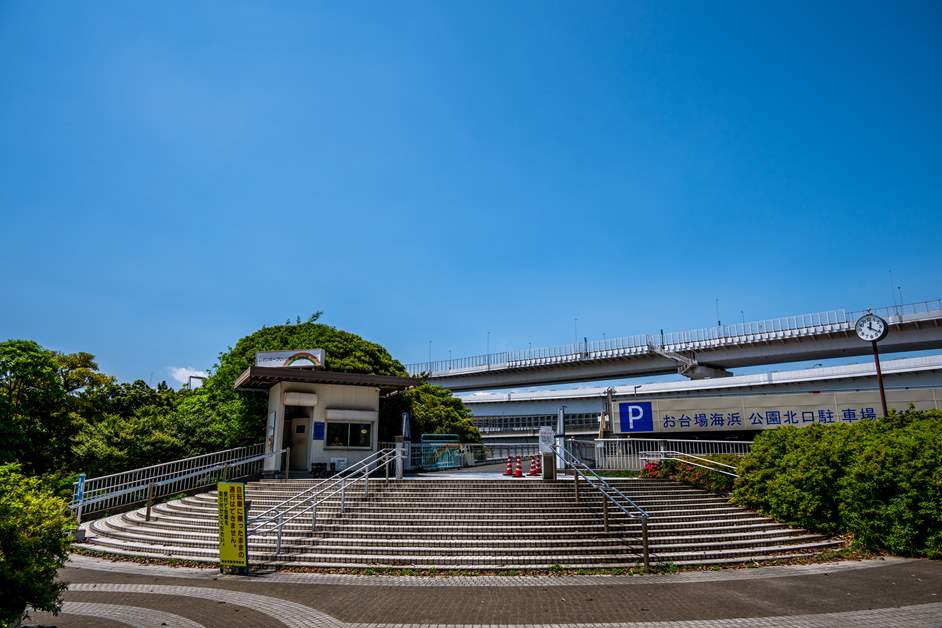 다이바 쪽 출입구에 도착했습니다. 바로 근처에 있는 다이바 공원은 다이로쿠다이바와 마찬가지로 에도 시대에 설치된 포대가 있던 자리를 정비한 공원으로, 지금도 포대 자리가 남아 있습니다.