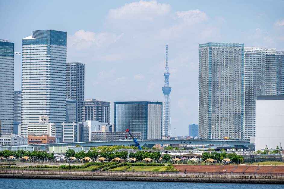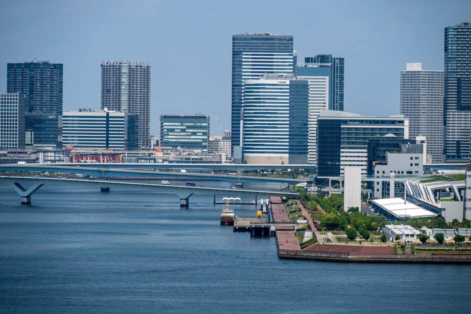시바우라 앵커리지 앞 시바우라 미나미후토 공원에서 다이바 방면을 촬영