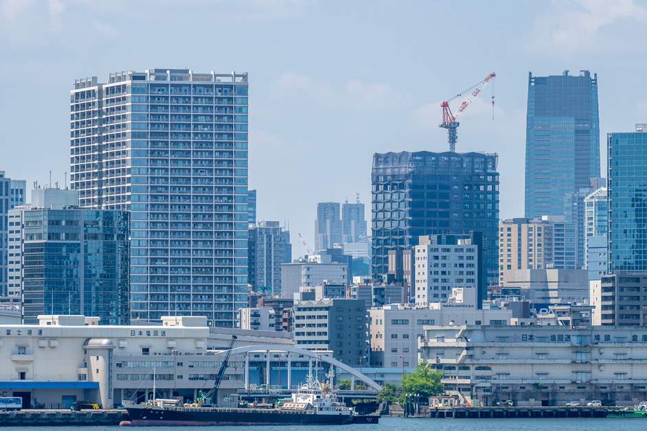 고층 빌딩이 늘어선 워터 프론트에서 미래를 느끼다