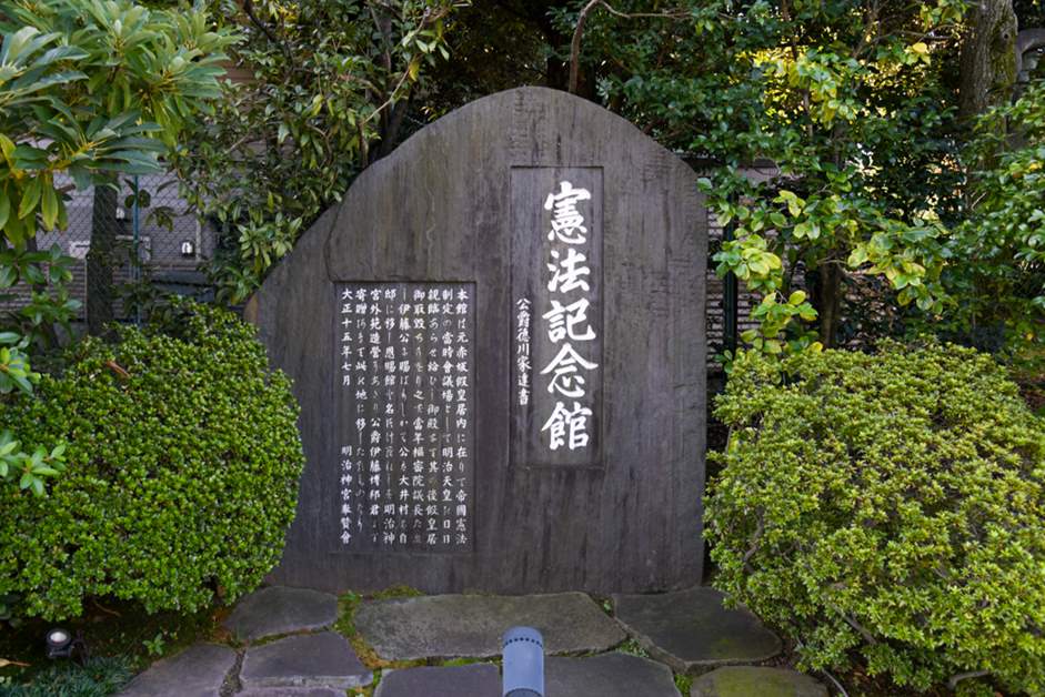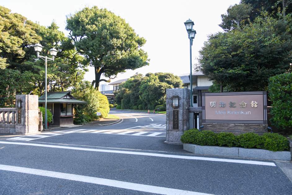 在1881年,当时作为明治天皇和昭宪皇太后暂时居住的赤坂临时皇居的别殿所建造的“赤坂临时皇居御会食所”(现今·明治纪念馆本馆)是明治纪念馆的前身。此后,到1889年明治宫殿竣工为止,这里就成为了日本第一个迎宾馆,也成为了三大节的赐宴和宫中晚宴的会场。另外,在1888年大日本帝国宪法草案审议的御前会议在这里召开,成为次年2月颁布宪法的重要场地。