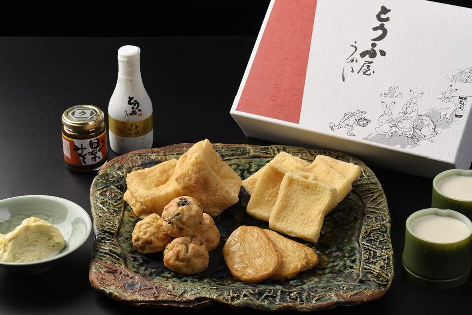 豆汁豆腐也可以在网店订购。与大豆甜味突出的吟酿豆腐为一套的“豆汁豆腐套餐”让人充分感受到Ukai飘逸的技巧。除此之外,在店里的特产处也有备受好评的豆腐和油炸豆腐的套装上加以融化的口感为傲的生腐竹的“豆腐屋Ukai什锦套餐(含腐竹)”也很受欢迎。