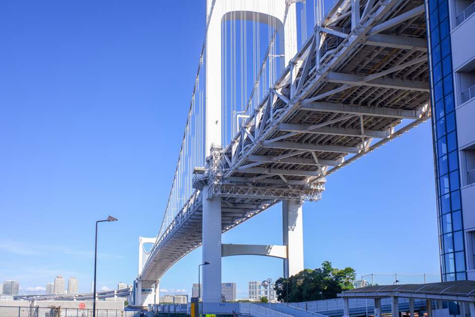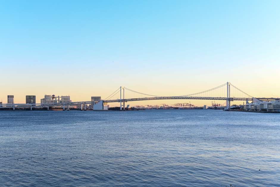 从竹芝码头也能看到的是在英语圈的游客中人气很高的景点“彩虹桥”。连接市中心和台场的全长约800米的桥梁,在1993年开通后,成为东京不可缺少的景色之一。夜间灯光鲜艳,作为夜景景点也很有名。