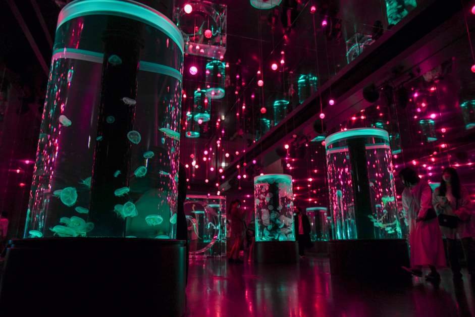 麦克塞尔Aqua Park品川是展示了约350种2万个生物的水槽群而与投影映射等技术相融合的一家娱乐度很高的水族馆。在圆柱状的水槽中摇曳的水母,与训练师默契的表演加上光和声音的演出而展开的海豚表演等看点不尽,只要时间允许,是永远都想逗留的地方。
