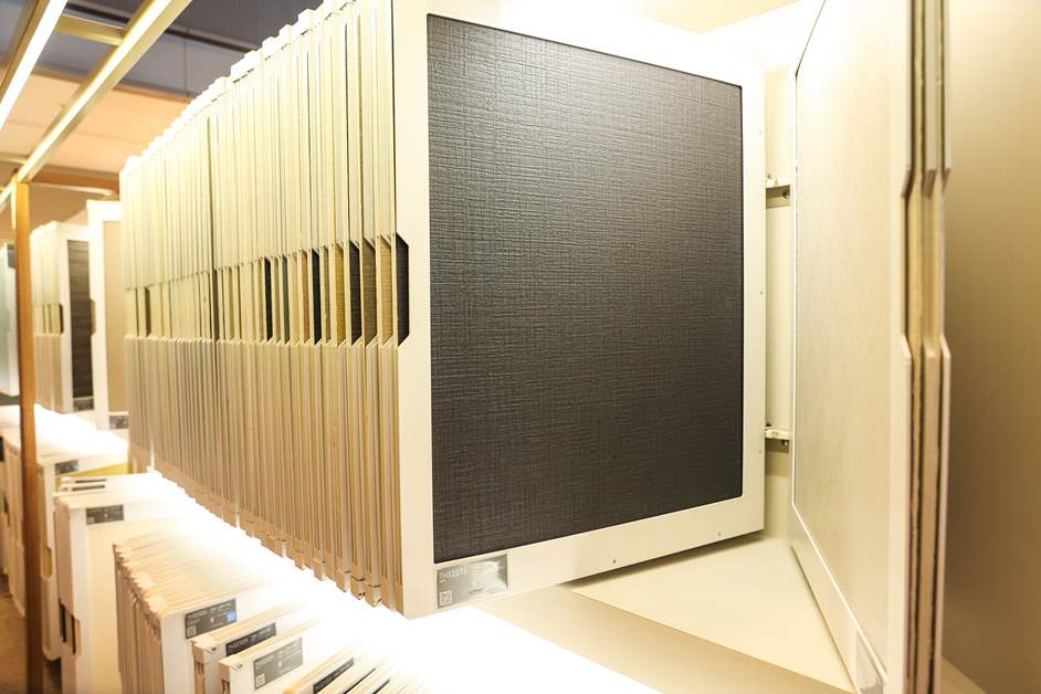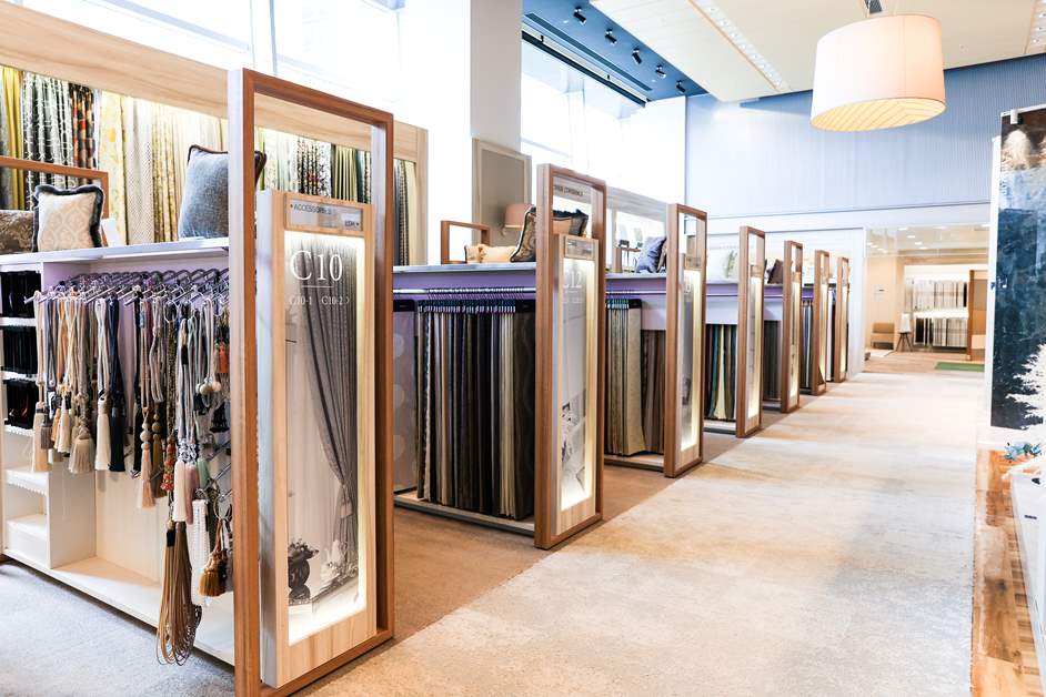 如果要在数量庞大的物品中寻找自己喜爱的壁纸、地板材料和面料,建议事先在山月主页上可浏览的“数字目录”中进行浏览,做到心中有数。如果对新房间的布置尚未确定,不妨参考展示厅内中央的“风格展示间”。风格展示间是根据不同生活场景进行呈现的样板展示间,融入了当前的流行趋势和新商品,或许能为房间装饰提供好的灵感。