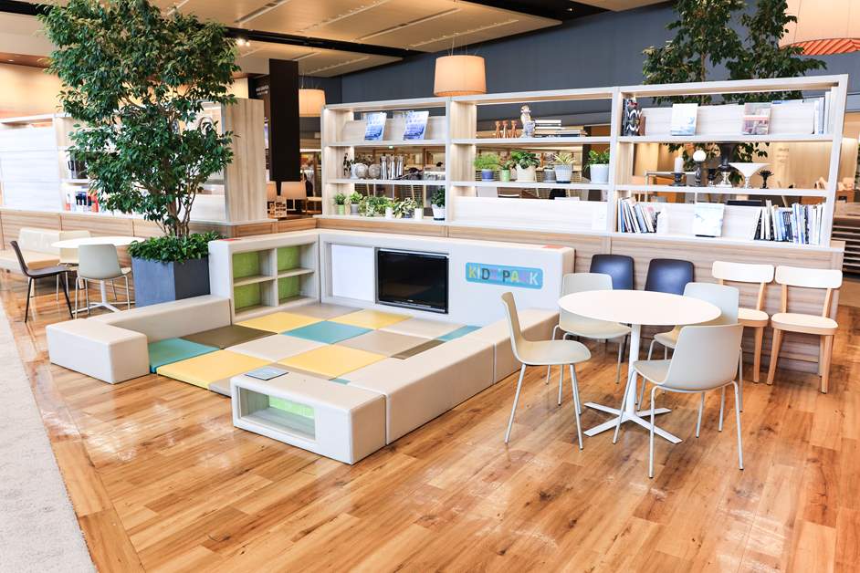 山月品川展示厅吸引了从房屋制造商、建筑公司等专业用户到不经意间到访的普通用户等众多参观者。访客群体中有许多是家庭群体,因此展示厅内还设有儿童区、哺乳室和多功能卫生间等。即使携带小孩前来也能放心在展示厅内参观。