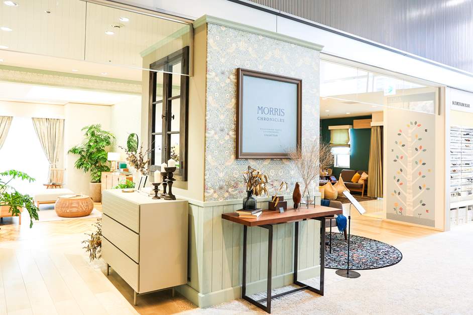 在主要展示被誉为“现代设计之父”的英国纺织品设计师威廉·莫里斯的原创系列“MORRIS CHRONICLES”的展区内,可在欣赏莫里斯优美设计所蕴含的世界观的同时,亲身感受易于融入当下日本住宅场景的搭配。