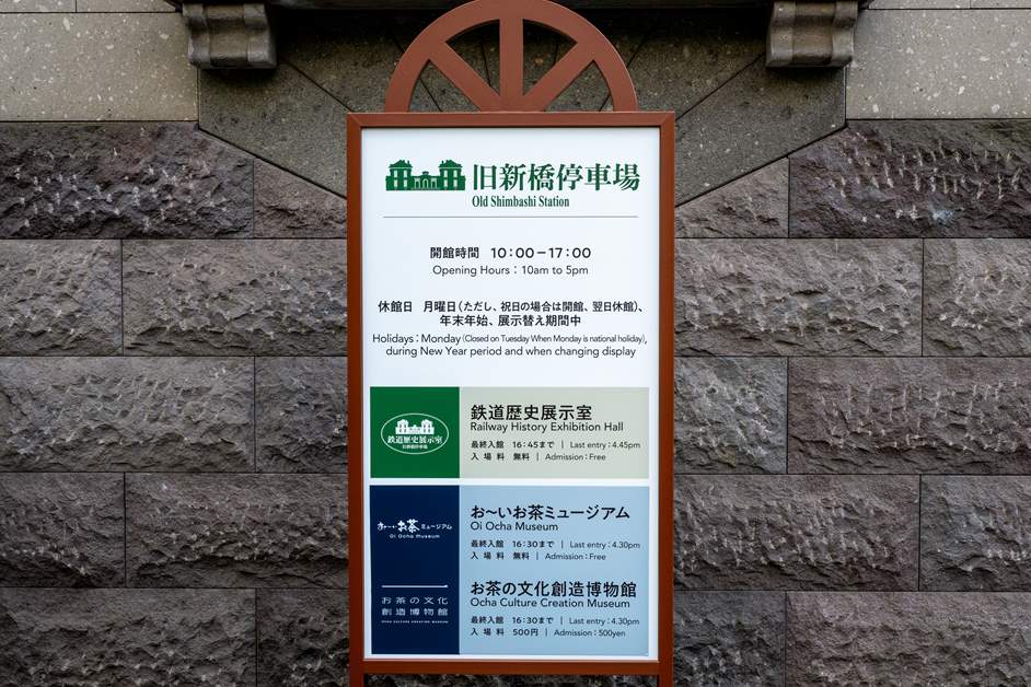 博物馆所在的旧新桥停车场建于2003年,重现了于明治初期在日本首次开业的新桥停车场的车站。步行 5 分钟以内可抵达新桥站和汐留站,除“茶的文化创造博物馆”和“Oi Ocha 博物馆”以外,还开设了由东日本铁道文化财团运营的“铁道历史展示室”。