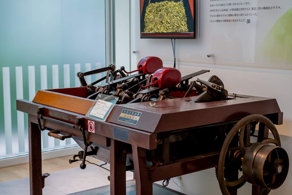在博物馆里,还能学习茶的制法。从采摘茶叶开始,制作茶的过程还经过了送风、加湿、揉制等几道工序。“这里展示的精揉机是实际使用过的,将手揉的工序机械化的机器”(笹目馆长)