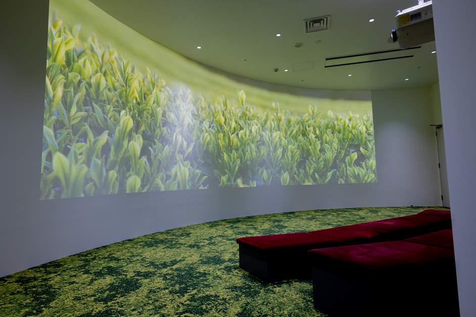 这里还介绍了日本的茶田、作为植物的茶树等。在“茶树的一生”展台,以动画的形式表现了自生的茶树的一生。“由于茶树通常是通过扦插繁殖,人们很少从零开始栽培,但原本还是从有根的茶苗开始培育的。从种植到收获茶叶,需要花费 7 年的岁月”(笹目馆长)