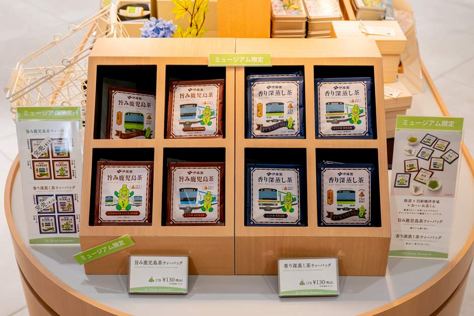 该设施限定销售的旧新桥停车场和 Oi Ocha 小子联名的茶包,也是热门商品之一。原创的设计精美而别致