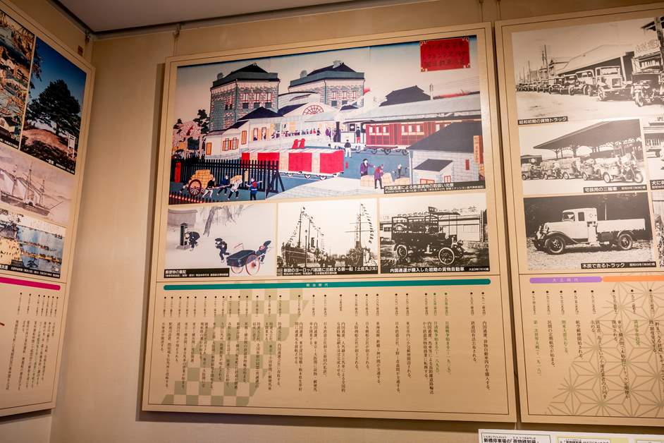 在1楼的“物流历史”展厅,可以学习到主要从江户时代到1970年前后的物流发展历程。